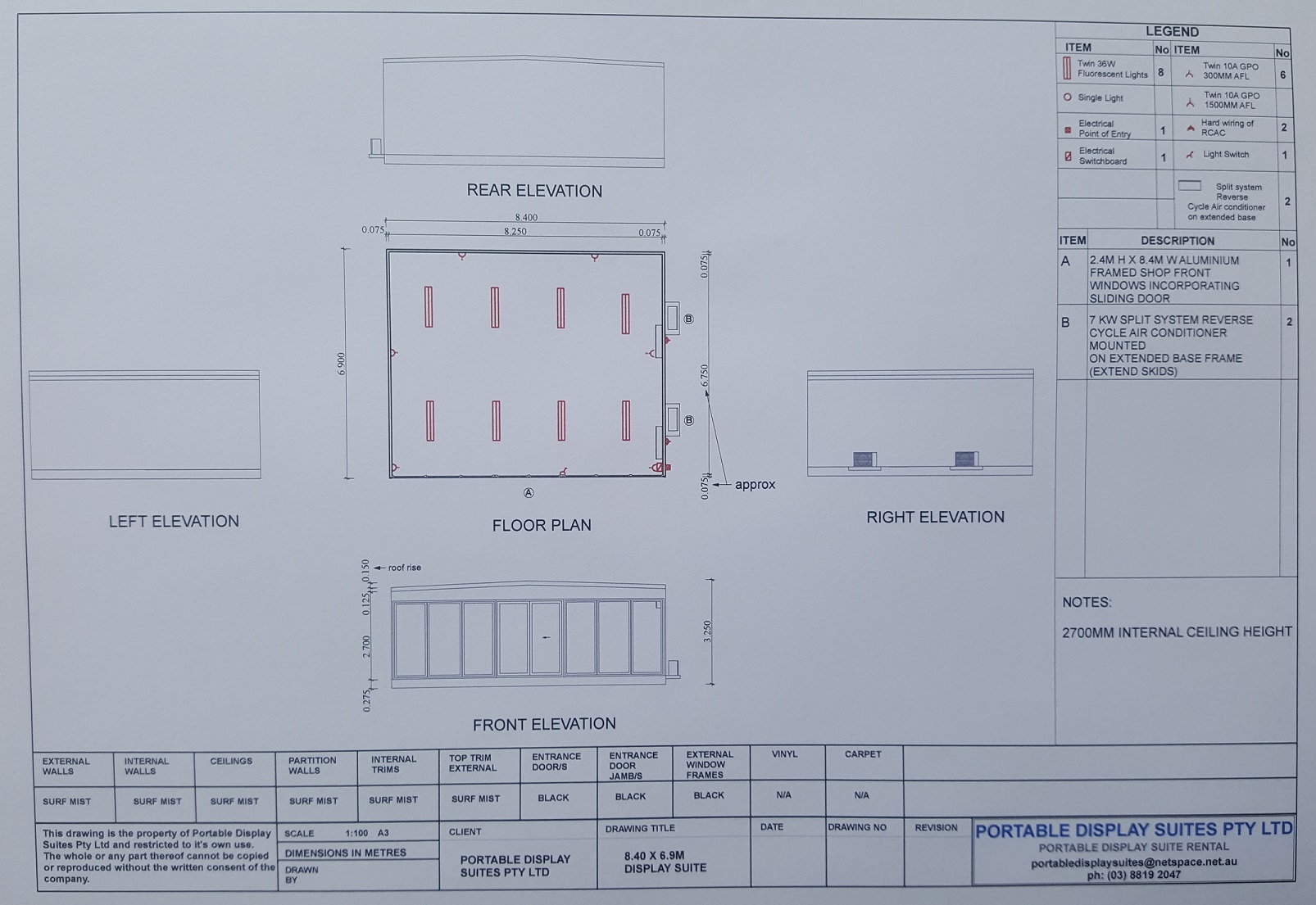 The 8.4 x 6.9m Portable Display Suites are large enough to provide a spacious open plan room to incorporate your kitchen and bathroom fit outs along with free standing project models and marketing materials.